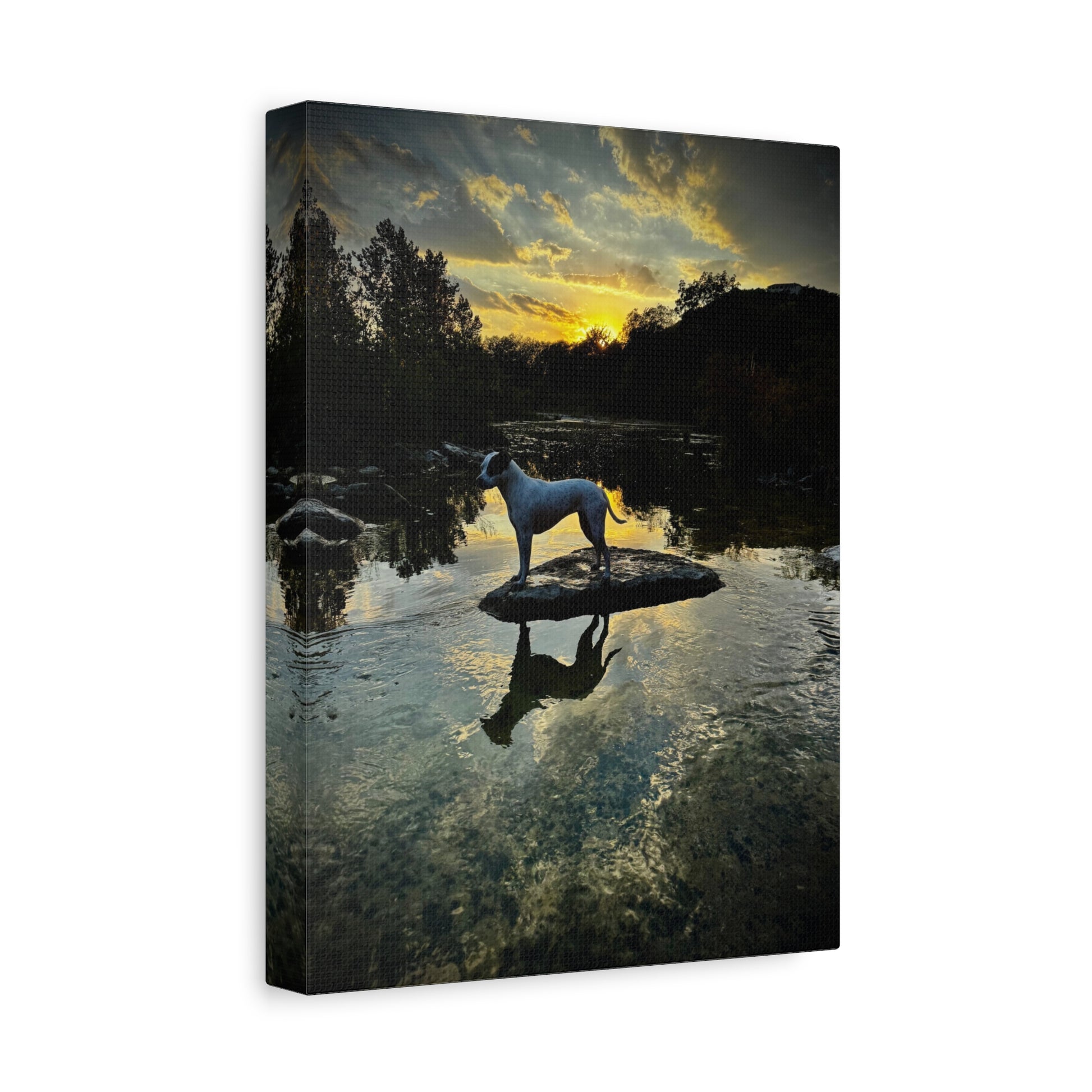 Dog - Manxy - Sunset Canvas Wall Art — Scenic River Reflection Matte Stretched Print