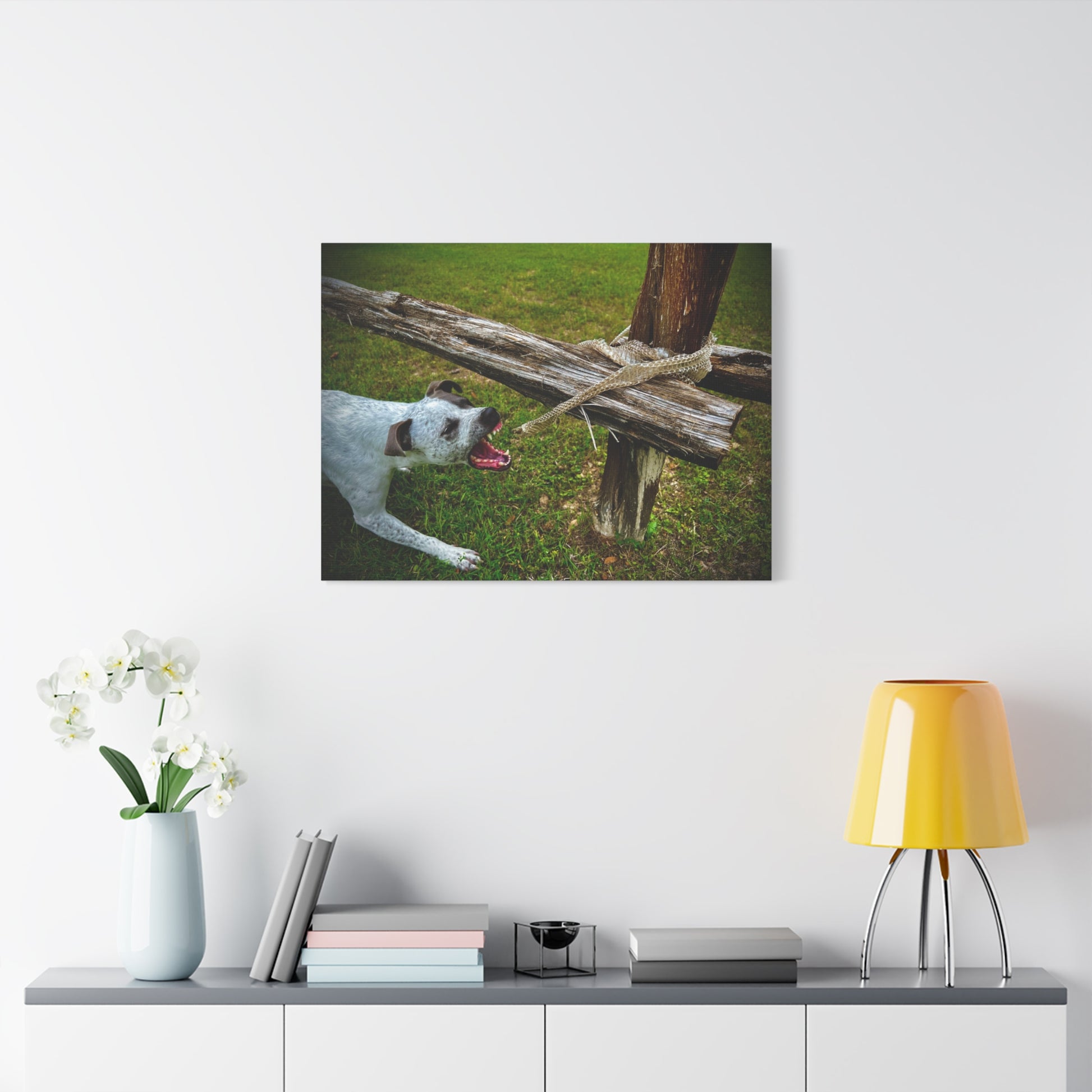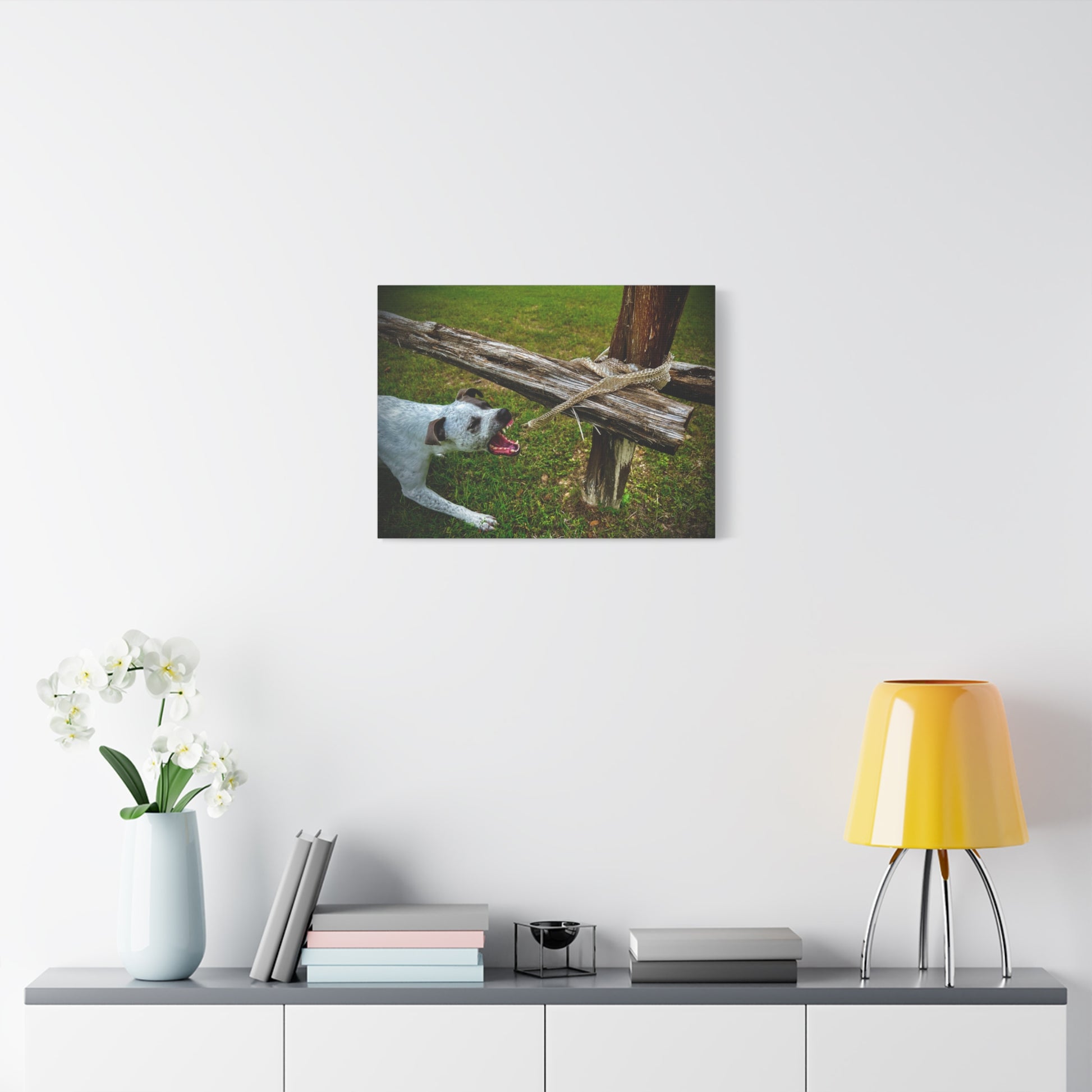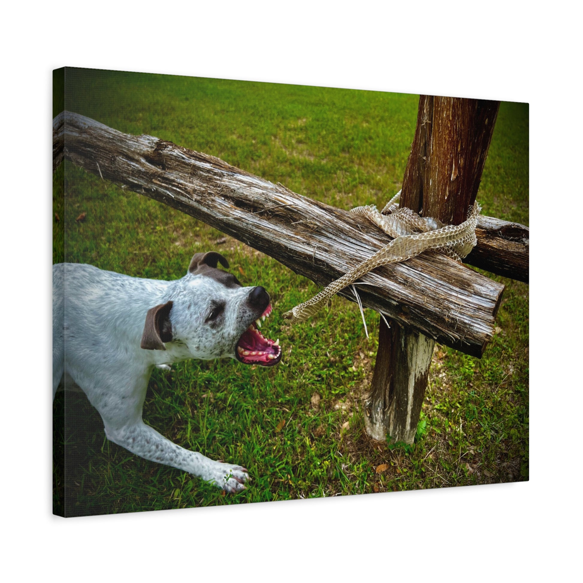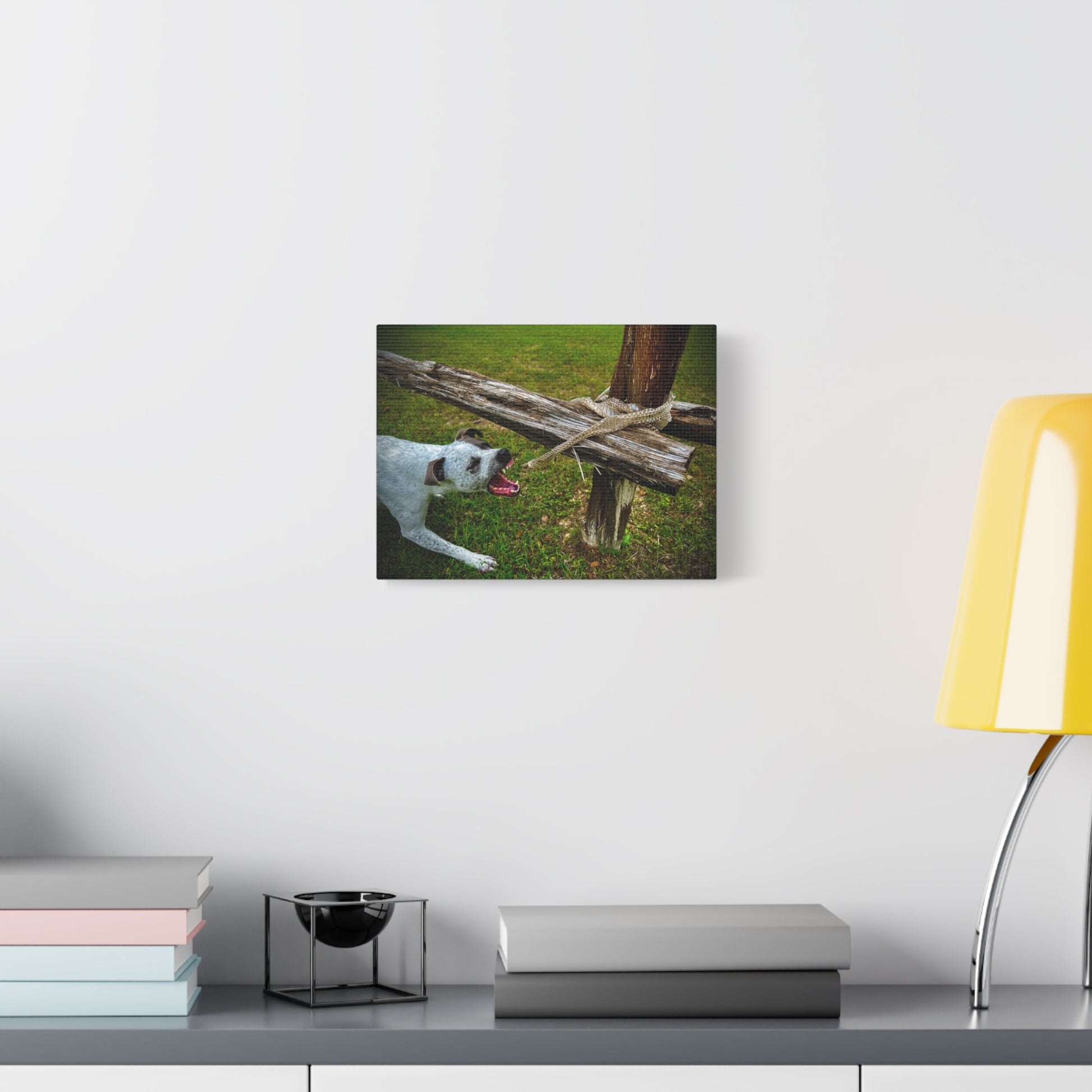 Dog Biting At Snake Skin Matte Canvas, Stretched, 1.25"