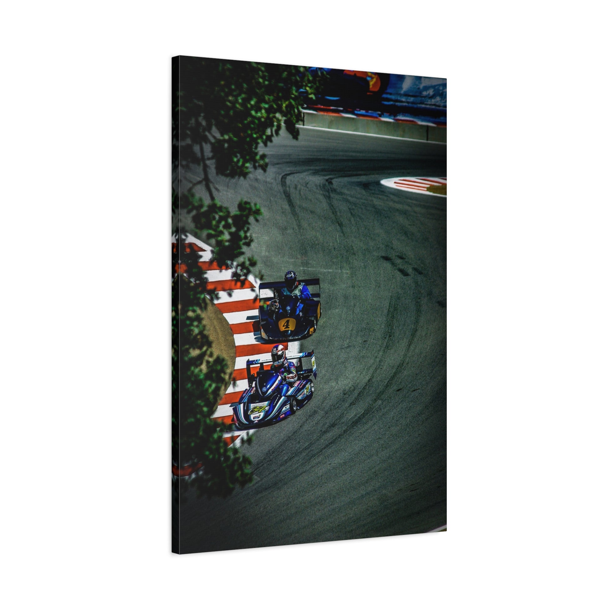 Motorcycle Racing Canvas Print — Grand Prix Track Corner Photograph (Matte Stretched)
