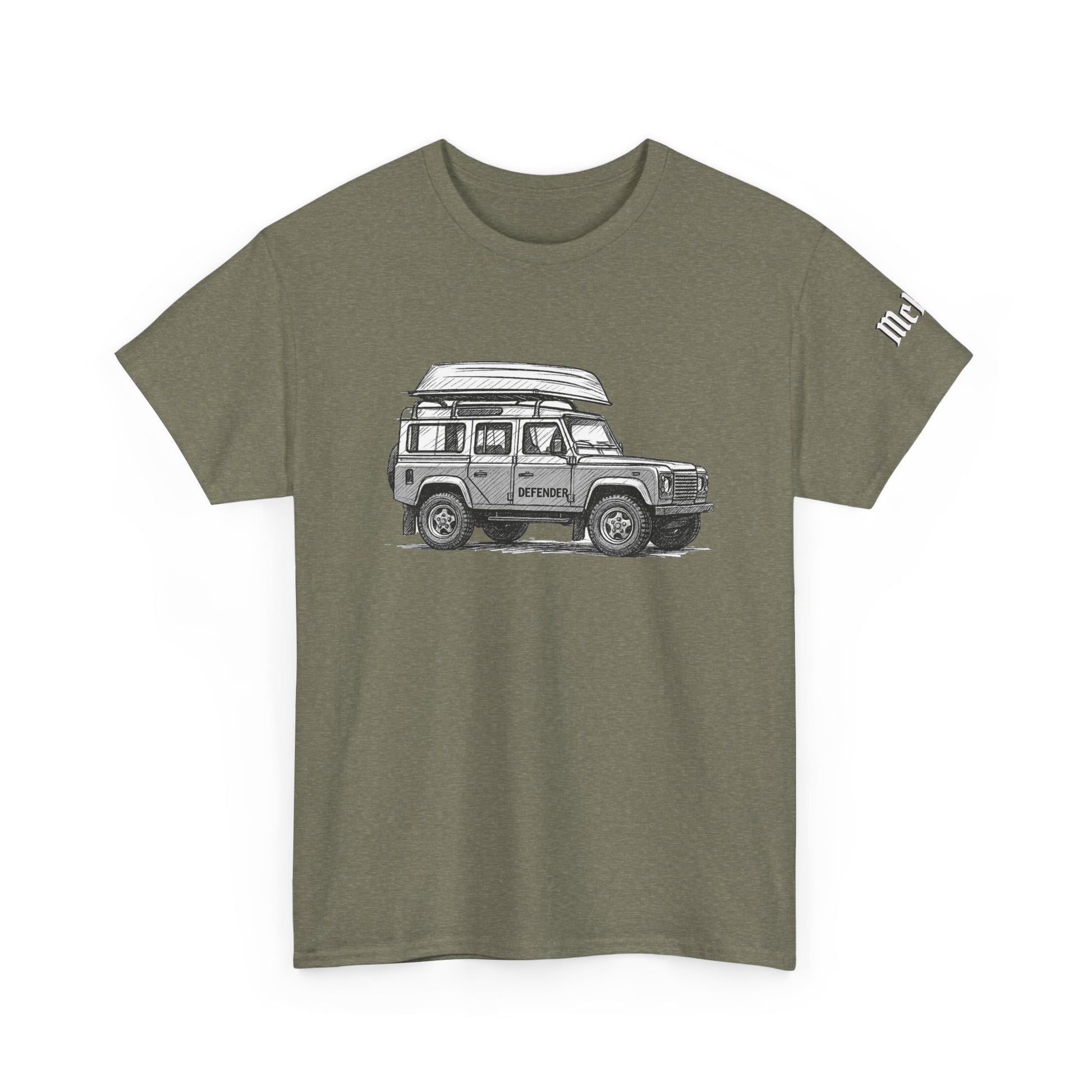 A rugged, soft-feel tee that carries the quiet joy of a weekend escape. The hand-sketched expedition Truck / Suv and canoe print sits centered on an earthy olive background — a subtle badge for people who live for backroads, paddle launches at dawn, and campsites under pines. Lightweight but durable cotton holds shape and print through washes. Wear it on slow mornings packing gear, at informal meetups with fellow travelers, or layered under a flannel as the temperature drops. This shirt feels lived-in from the first wear and keeps the focus on adventure rather than showy branding.