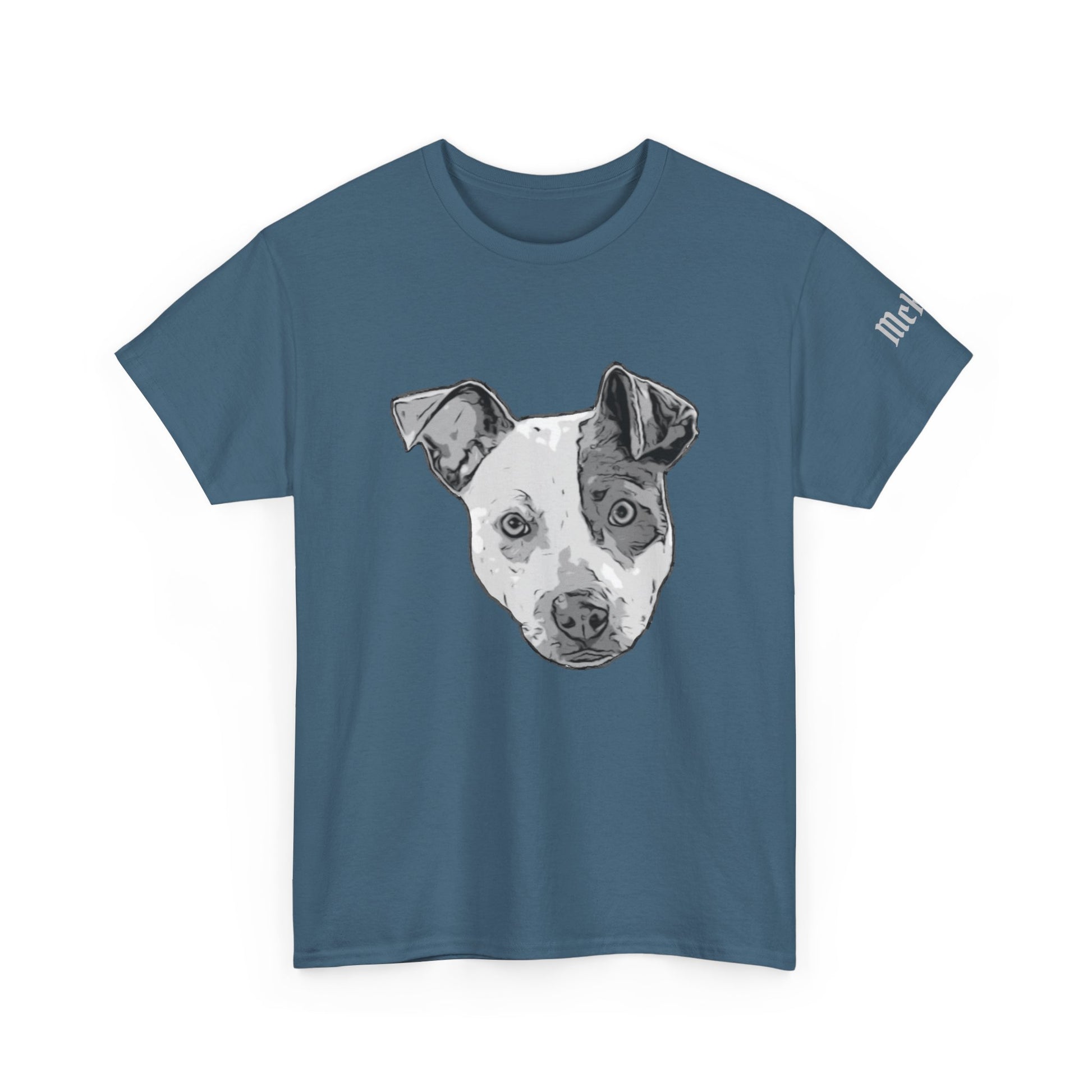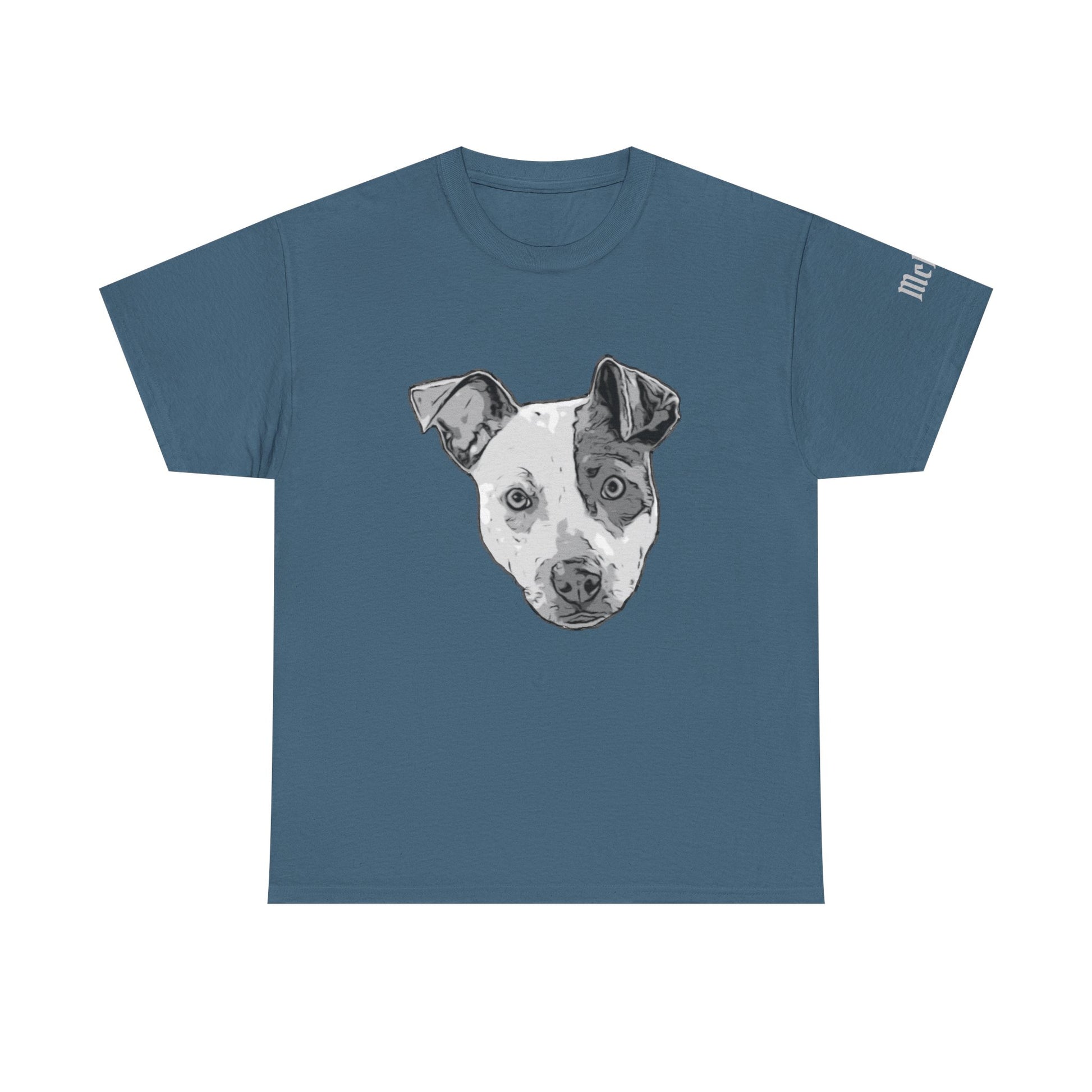 Soft, lived-in comfort meets quiet personality. This cotton tee carries a hand-sketched dog portrait front-and-center — thoughtful, slightly worn-in ink strokes that read like a keepsake photo. It settles into everyday routines: morning coffee on the stoop, slow walks through neighborhood streets, or curled-up reading sessions at home. The muted blue canvas keeps the artwork the focus while giving a calm, approachable vibe. Wear it when you want something simple that still sparks conversation and reminds you of the steady companionship of a loyal pup.