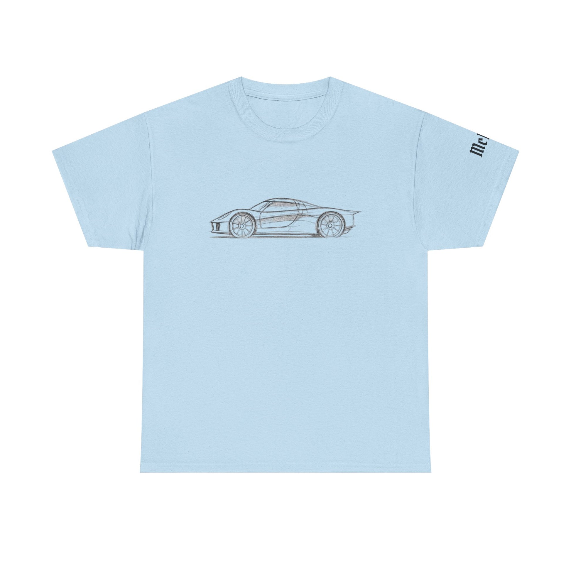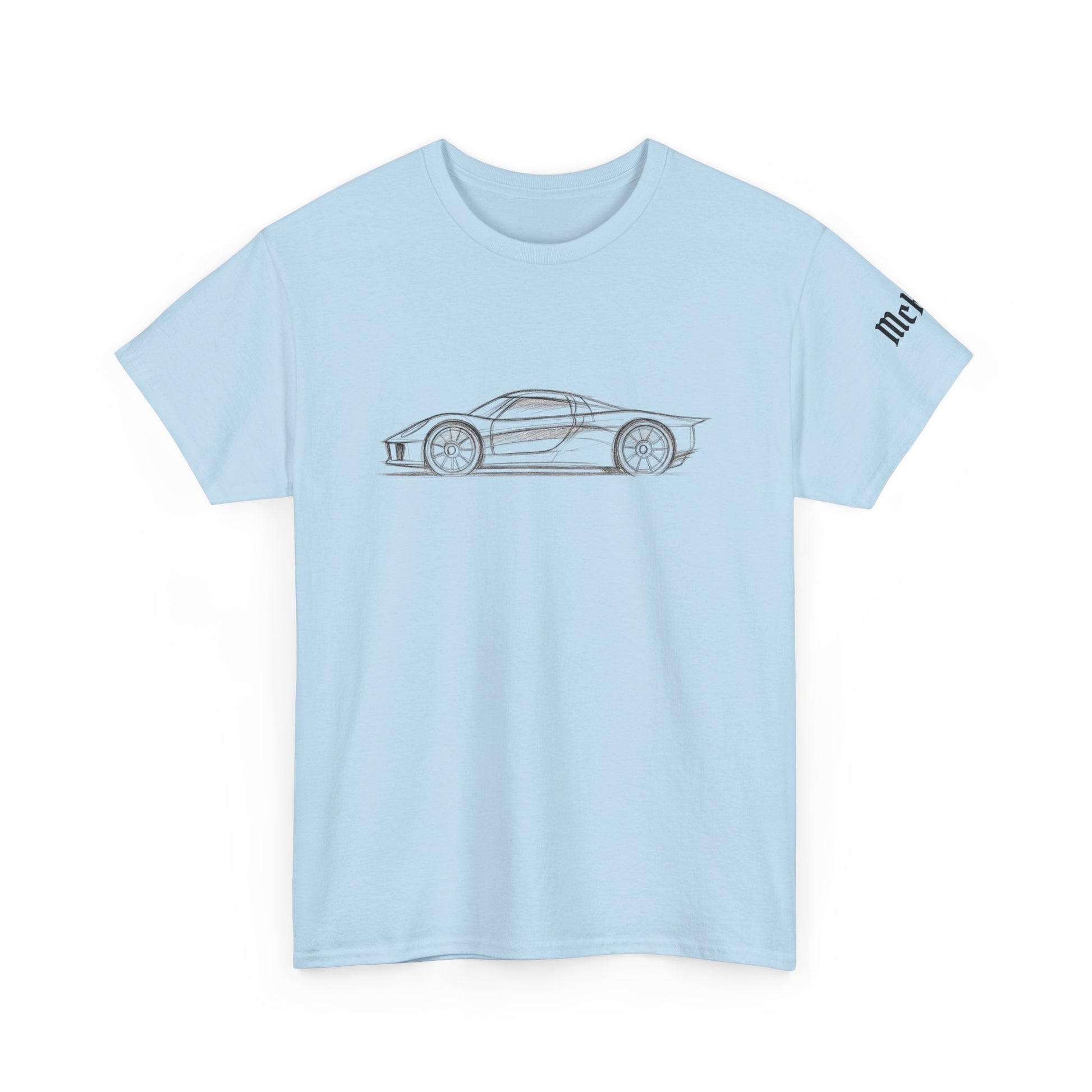 A clean, sturdy tee designed for people who appreciate automotive design, simplicity, and quiet speed. The soft light-blue shirt features a minimalist side-profile sketch of a modern concept car — small, subtle artwork that speaks louder than big logos.