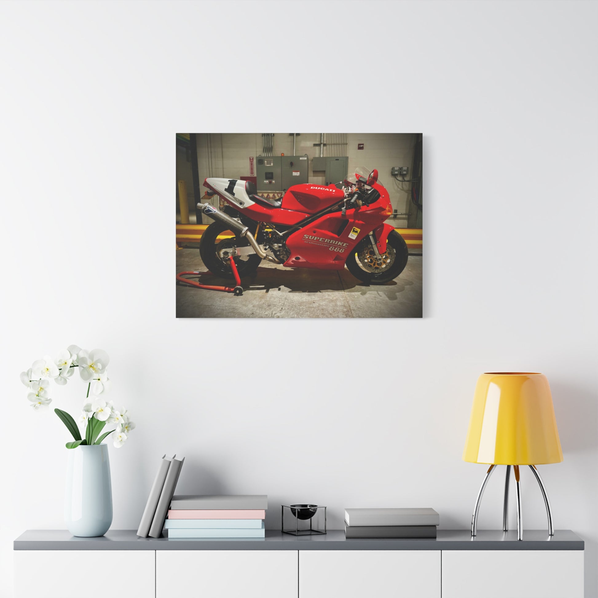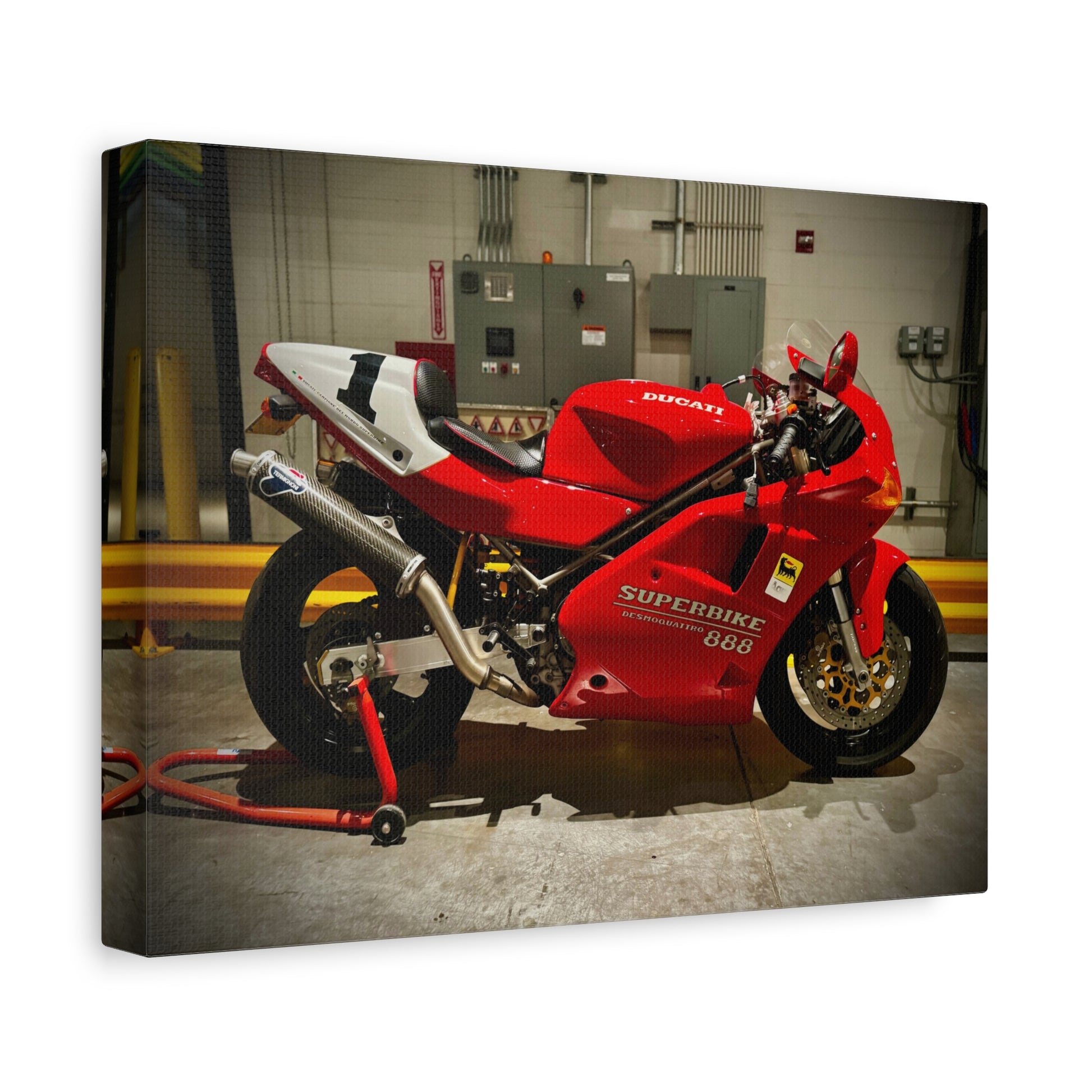 Red Ducati 888 Superbike Canvas Print — Matte Stretched Motorcycle Wall Art