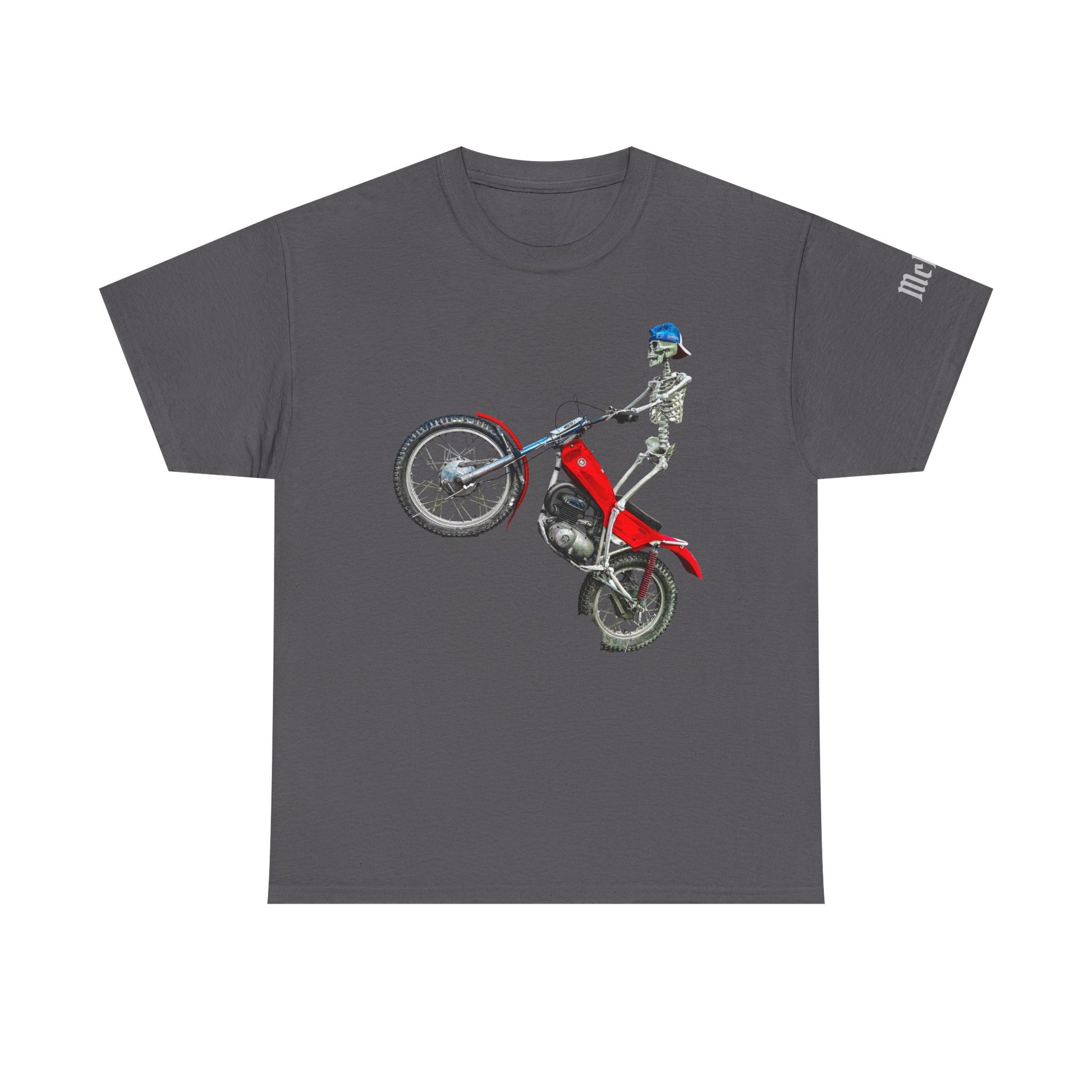 Skeleton Motocross T‑Shirt — Retro Red Dirt Bike Stunt Tee