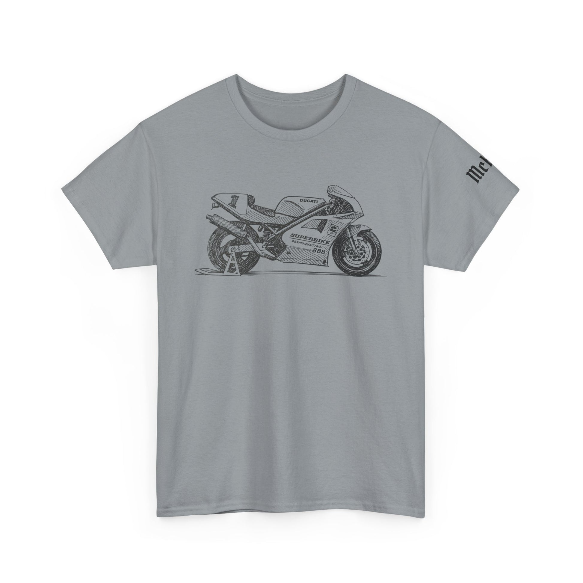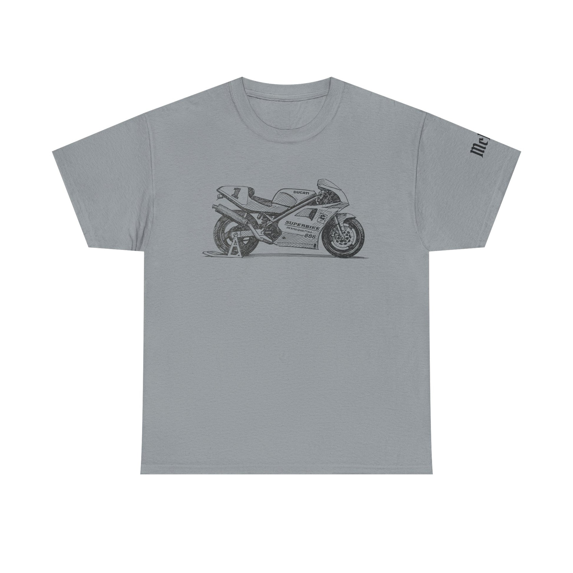 This classic tee carries a quiet, confident energy — a clean white canvas with a detailed grayscale sportbike illustration across the chest. It feels like the rumble of a morning ride distilled into fabric: simple, focused, and built to move with you. The relaxed crew neck and medium-weight cotton give it substance without stiffness. Wear it on route scouting, at the garage with friends, or layered under a jacket for an evening meet-up. The art reads like a mechanic’s pencil sketch — precise, restrained, and full of reverence for two-wheeled engineering.