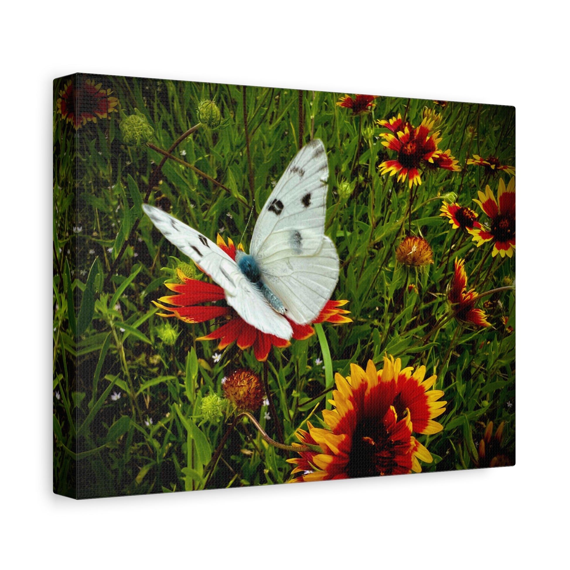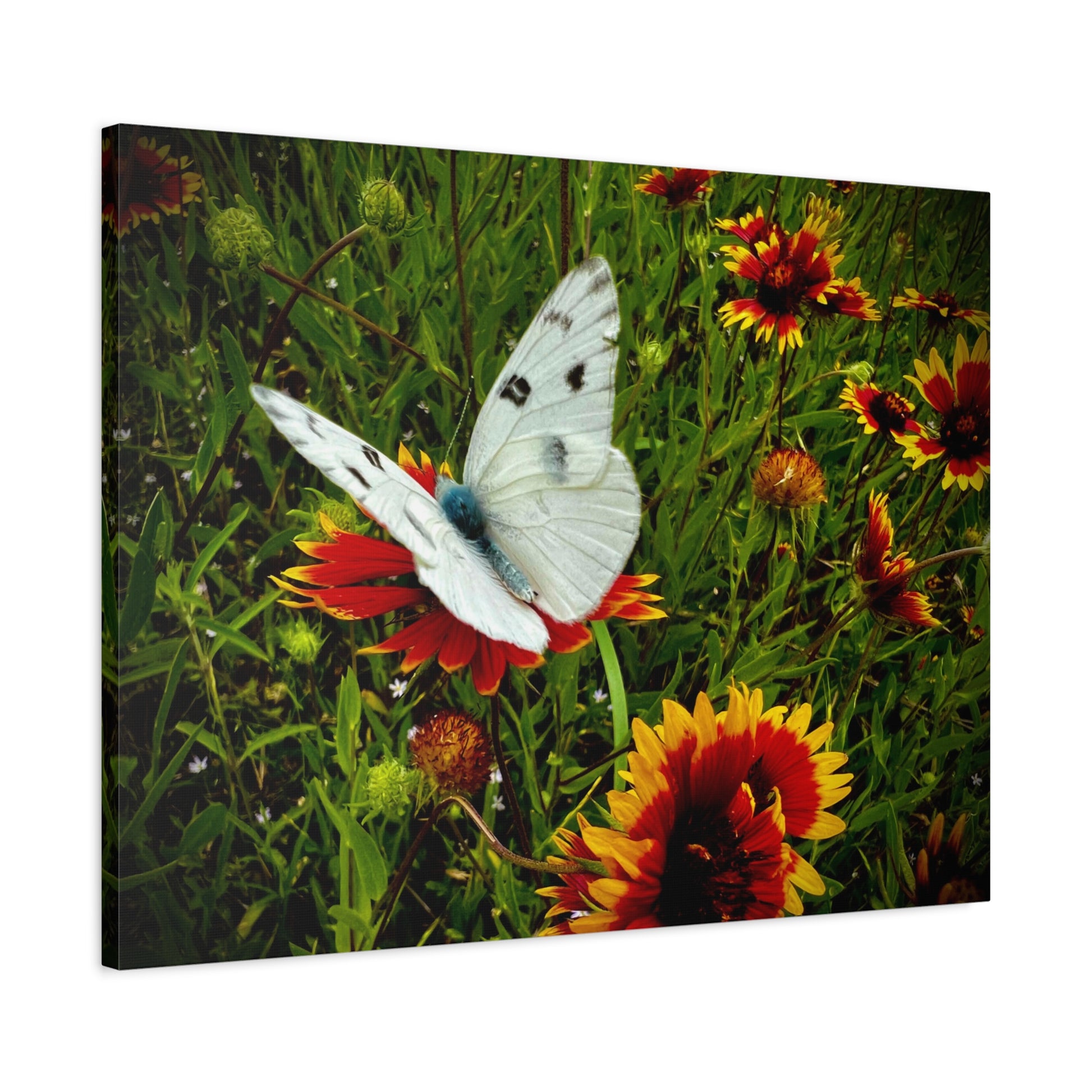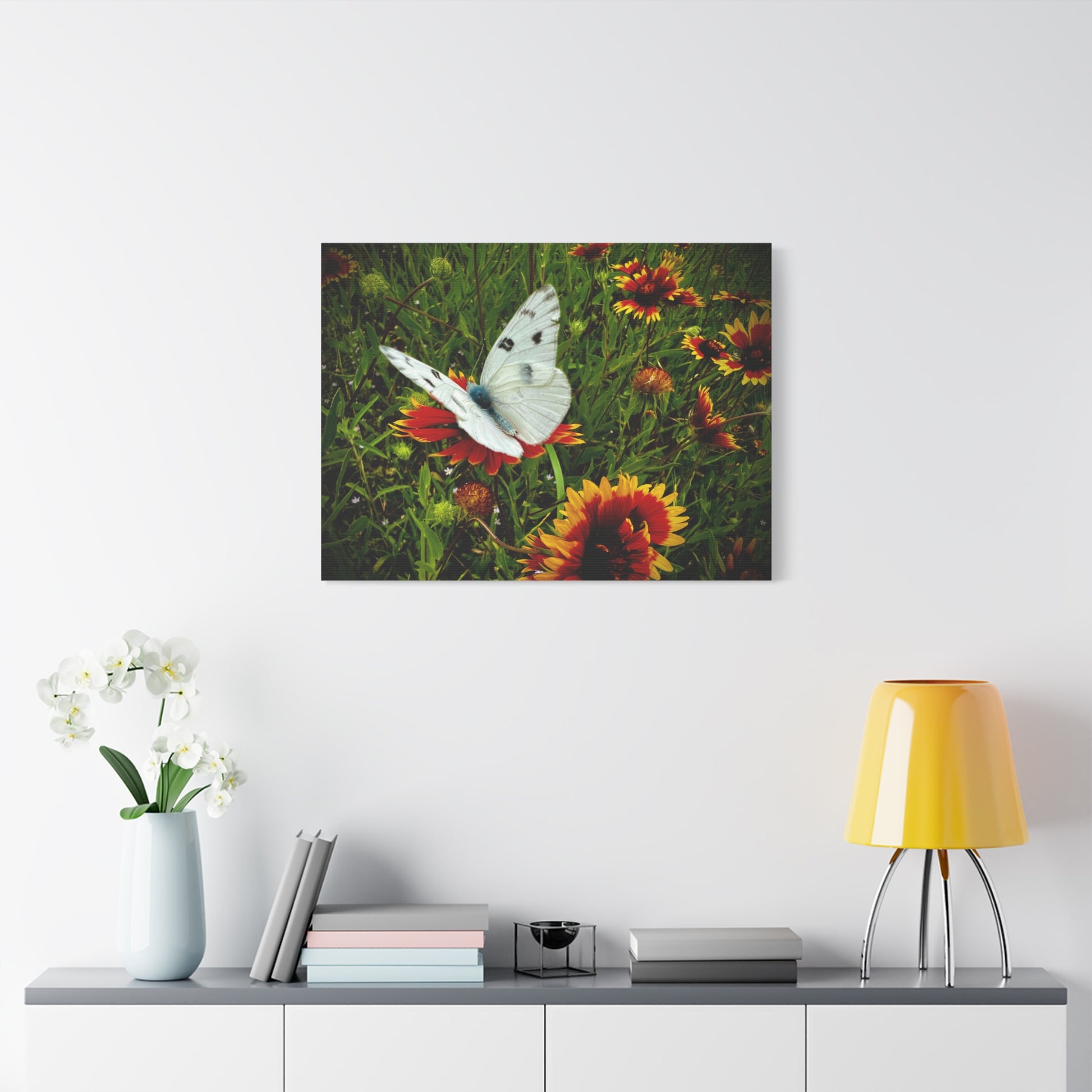 White Butterfly on Indian Blanket Wildflowers Matte Canvas Wall Art